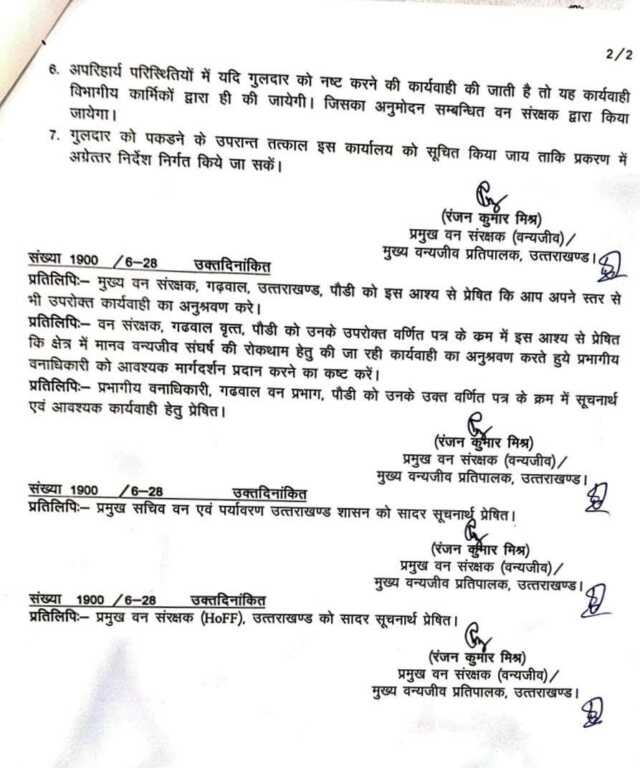 - पौड़ी गढ़वाल में गुलदार का कहर: 42 वर्षीय व्यक्ति की मौत, वन मंत्री सुबोध उनियाल के निर्देश पर गुलदार को पकड़ने, ट्रैंक्विलाइज़ करने व आवश्यक परिस्थिति में अंतिम विकल्प के रूप में नष्ट करने के आदेश जारी