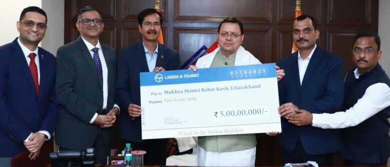 New Delhi/Dehradun : मुख्यमंत्री पुष्कर सिंह धामी से बुधवार को नई दिल्ली में लार्सन एंड टुब्रो (L&T) के प्रतिनिधिमंडल ने शिष्टाचार भेंट की। इस अवसर पर प्रतिनिधिमंडल ने प्रदेश में हाल ही में हुई प्राकृतिक आपदाओं से प्रभावित लोगों की सहायता एवं राहत-पुनर्वास कार्यों में सहयोग हेतु ₹5 करोड़ (पांच करोड़ रुपये) की सहायता राशि मुख्यमंत्री राहत कोष में प्रदान की।