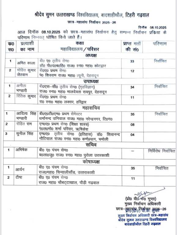 ऋषिकेश में छात्र महासंघ चुनाव में एबीवीपी का कब्ज़ा, सभी पदों पर शानदार जीत