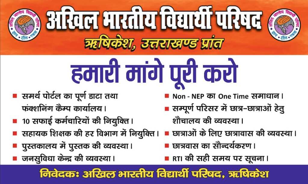 ऋषिकेश पीजी कॉलेज में ABVP का आमरण अनशन मांगें नहीं माने जाने पर