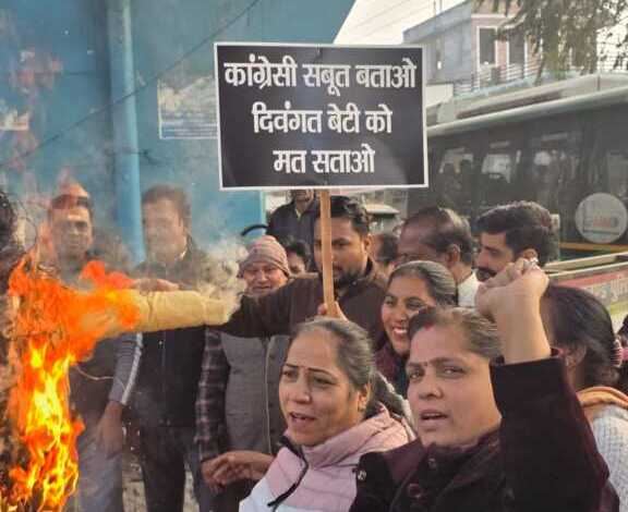देहरादून में भाजपा महिला कार्यकर्ताओं द्वारा फूंका गया पुतला कांग्रेस का