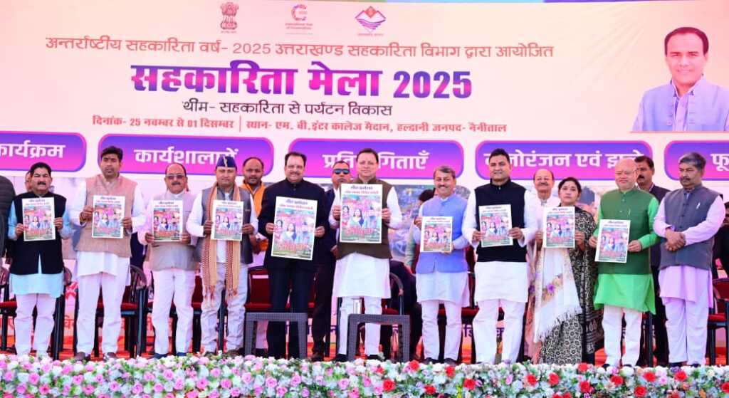 हल्द्वानी : मुख्यमंत्री पुष्कर सिंह धामी ने आज एम0बी0 इंटर कॉलेज, हल्द्वानी (जनपद नैनीताल) में आयोजित अंतर्राष्ट्रीय सहकारिता वर्ष–2025 के उपलक्ष्य में भव्य सहकारिता मेले में प्रतिभाग किया। इस अवसर पर मुख्यमंत्री ने प्रदेश की स्वयं सहायता समूहों और सहकारी समितियों को सशक्त बनाने की दिशा में महत्वपूर्ण कदम उठाते हुए पशुपालन एवं सब्जी उत्पादन में कार्यरत स्वयं सहायता समूह की महिलाओं को मध्यकालीन दीनदयाल उपाध्याय सहकारिता कल्याण योजना के तहत 16.97 करोड़ रुपये तथा एनआरएलएम स्वयं सहायता समूहों के अंतर्गत 75.50 लाख रुपये की वित्तीय सहायता प्रदान की। कार्यक्रम में उपस्थित जनसमुदाय ने गर्मजोशी से मुख्यमंत्री का स्वागत किया।मेले के शुभारंभ पर संबोधित करते हुए मुख्यमंत्री धामी ने कहा कि अंतर्राष्ट्रीय सहकारिता वर्ष और राज्य स्थापना की रजत जयंती के अवसर पर आयोजित यह मेला प्रदेश में सहकारिता आधारित अर्थव्यवस्था को नई गति प्रदान करेगा। उन्होंने बताया कि ‘सहकारिता से पर्यटन विकास’ थीम पर आधारित इस सात दिवसीय मेले में प्रदेश की सहकारी समितियों, स्वयं सहायता समूहों और किसानों द्वारा तैयार किए गए उत्पादों को मंच मिलेगा। साथ ही ईको-आतिथ्य, ईको-पर्यटन, होमस्टे प्रबंधन, स्थानीय व्यंजन, कृषि एवं फल उत्पाद संवर्धन जैसे विषयों पर विशेष कार्यक्रम भी आयोजित किए जाएंगे। उन्होंने कहा कि यह मेला स्थानीय अर्थव्यवस्था को मजबूत करने और सहकारिता की भावना को जन-जन तक पहुँचाने का सशक्त माध्यम बनेगा।