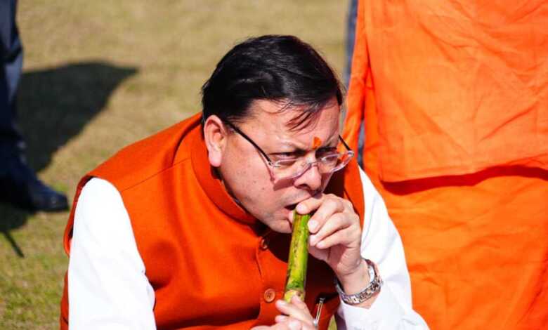 मुख्यमंत्री धामी ने सुनी किसानों की समस्याएं, लॉन में बैठकर लिया गन्ने का स्वाद