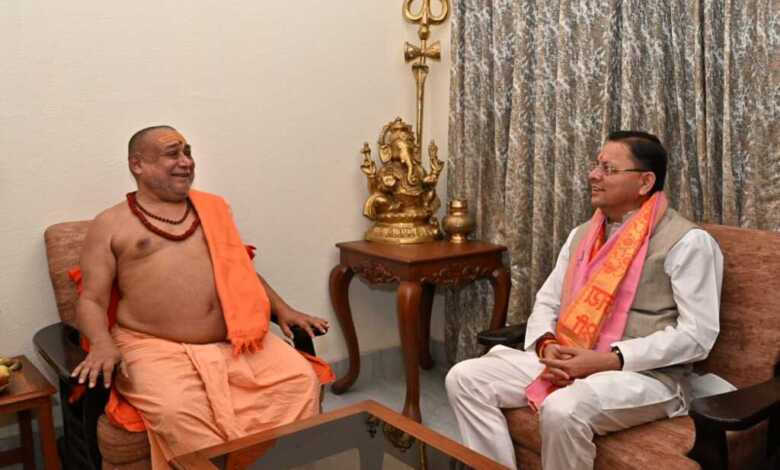 मुख्यमंत्री धामी ने हरिद्वार के कनखल स्थित जगतगुरु आश्रम पहुंचकर जगद्गुरु शंकराचार्य स्वामी राजराजेश्वराश्रम महाराज से भेंट कर उनका आशीर्वाद प्राप्त किया