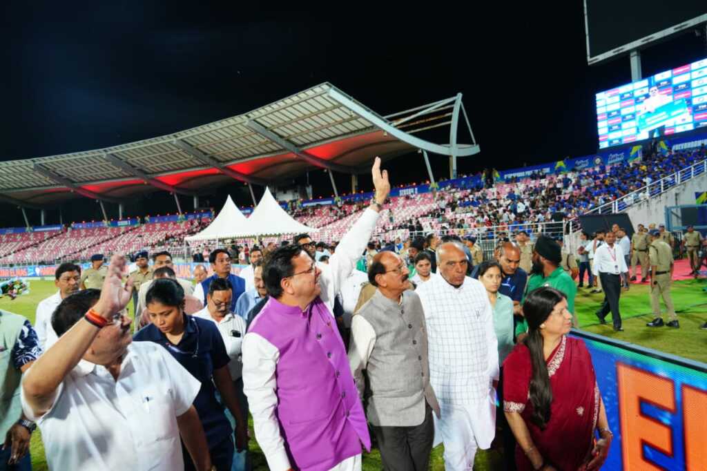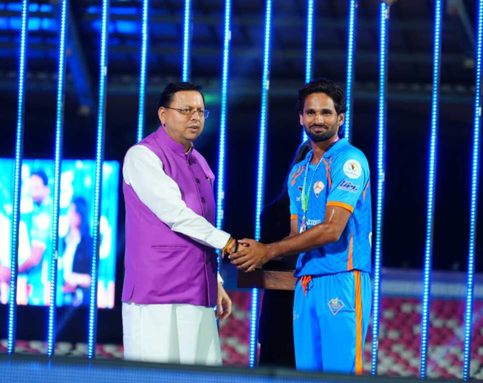 देहरादून : मुख्यमंत्री पुष्कर सिंह धामी ने क्रिकेट एसोसिएशन ऑफ उत्तराखंड के द्वारा राजीव गांधी इंटरनेशनल स्टेडियम रायपुर देहरादून में आयोजित उत्तराखंड प्रीमियर लीग 2025 के समापन समारोह में प्रतिभाग किया। हरिद्वार एलमास उत्तराखंड प्रीमियर लीग 2025 चैंपियनशिप का विजेता रहा। सभी खिलाड़ियों एंव आयोजन समिति के पदाधिकारियों का स्वागत व अभिनन्दन करते हुए मुख्यमंत्री पुष्कर सिंह धामी ने उत्कृष्ट प्रदर्शन द्वारा उत्तराखंड प्रीमियर लीग चैंपियनशिप को जीतने वाली टीम के सभी खिलाड़ियों को बधाई दी।
