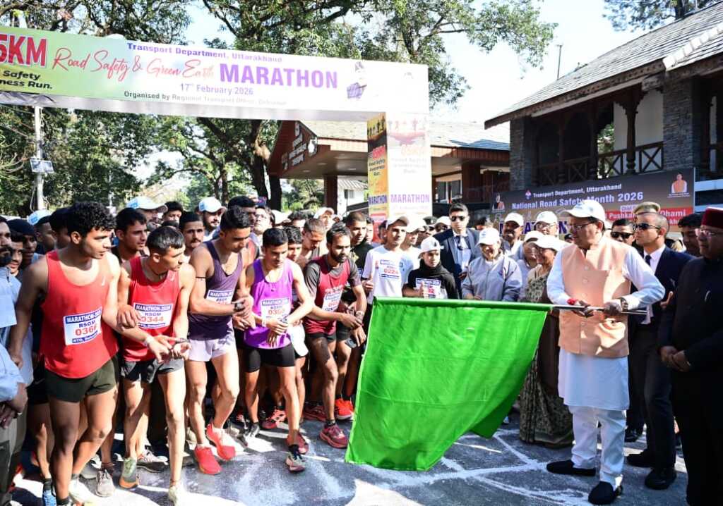 देहरादून : मुख्यमंत्री पुष्कर सिंह धामी ने मंगलवार को कैंट रोड, देहरादून से सड़क सुरक्षा जागरूकता एवं पर्यावरण संरक्षण के उद्देश्य से आयोजित 5 किलोमीटर दौड़ का फ्लैग ऑफ किया। विभिन्न आयु वर्गों के बड़ी संख्या में प्रतिभागियों ने इस दौड़ में भाग लिया। इस अवसर पर मुख्यमंत्री धामी ने सभी प्रतिभागियों को सड़क सुरक्षा नियमों के पालन एवं पर्यावरण संरक्षण के प्रति जागरूकता बढ़ाने की शपथ भी दिलाई।मुख्यमंत्री ने कहा कि यातायात के नियमों का पालन करना एवं पर्यावरण की रक्षा प्रत्येक नागरिक का कर्तव्य है। सड़क सुरक्षा एवं पर्यावरण संरक्षण की दिशा में सरकार द्वारा निरंतर प्रयास किए जा रहे हैं।इस अवसर पर विधायक खजान दास, सविता कपूर एवं परिवहन विभाग के अधिकारी उपस्थित थे।