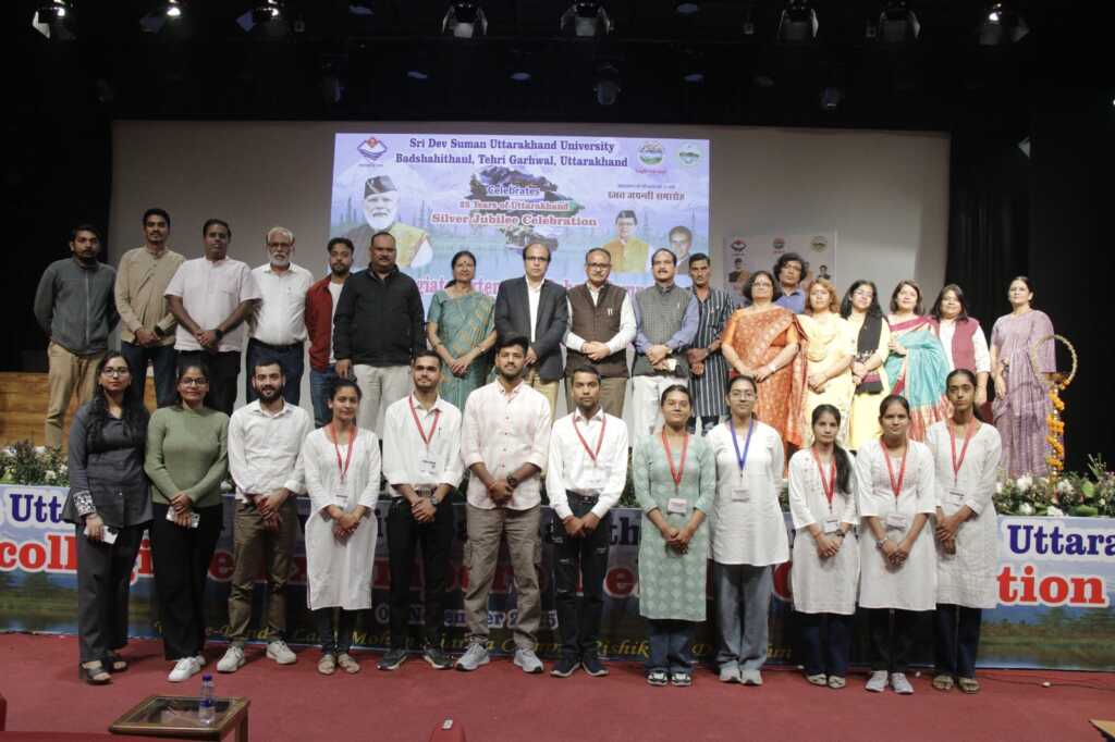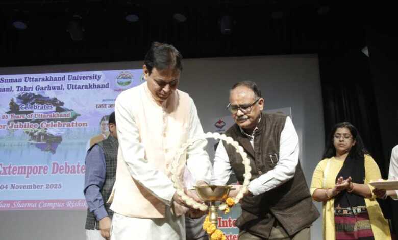 ऋषिकेश: राज्य स्थापना रजत जयंती 2025 में आयोजित कार्यक्रम के अन्तर्गत आज दिनांक 04.11.2025 श्रीदेव सुमन उत्तराखण्ड विश्वविद्यालय के पं0 ललित मोहन शर्मा परिसर, ऋषिकेश में वाद-विवाद प्रतियोगिता का आयोजन किया गया इस कार्यक्रम का शुभारम्भ गिरीश डोभाल, उपाध्यक्ष राज्य मौन परिषद द्वारा दीप प्रज्वलन और सरस्वती वन्दना से हुआ। स्वागत भाषण परिसर निदेशक प्रो0 एम0 एस0 रावत द्वारा किया गया। कार्यक्रम के संयोजक प्रो0 दिनेश शर्मा ने कार्यक्रम की रूपरेखा का विवरण प्रस्तुत किया और साथ ही सभी आये हुये अतिथियों का स्वागत किया।