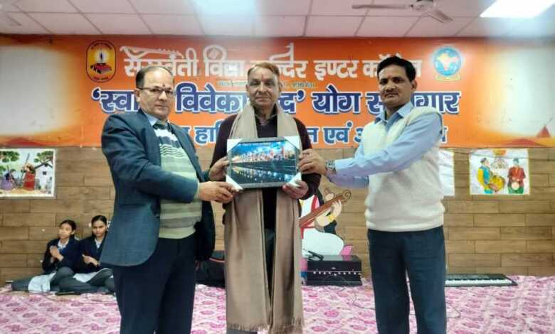 ऋषिकेश : आवास विकास स्थित सरस्वती विद्या मंदिर इंटर कॉलेज के विवेकानंद योग सभागार में राजकीय सेवा से सेवानिवृत्त प्रवक्ता (संस्कृत), अल्मोड़ा के डॉ. गिरीशचन्द्र जोशी का उत्कृष्ट सेवाओं व शैक्षिक योगदान के लिए भव्य स्वागत एवं सम्मान किया गया।कार्यक्रम में विद्यालय के प्रधानाचार्य उमाकांत पंत, उप प्रधानाचार्य नागेन्द्र पोखरियाल एवं बोर्ड परीक्षा प्रभारी सतीश चौहान ने संयुक्त रूप से जोशी को अंग-वस्त्र पहनाकर एवं मां गंगा का चित्र भेंट कर सम्मानित किया।