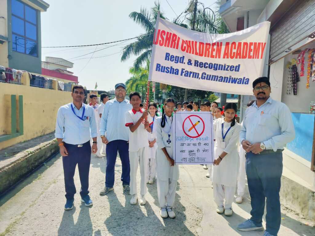 राजश्री चिल्ड्रन एकेडमी गुमानीवाला में बस्ता मुक्त दिवस के अवसर पर नशा मुक्ति जागरूकता रैली का आयोजन किया