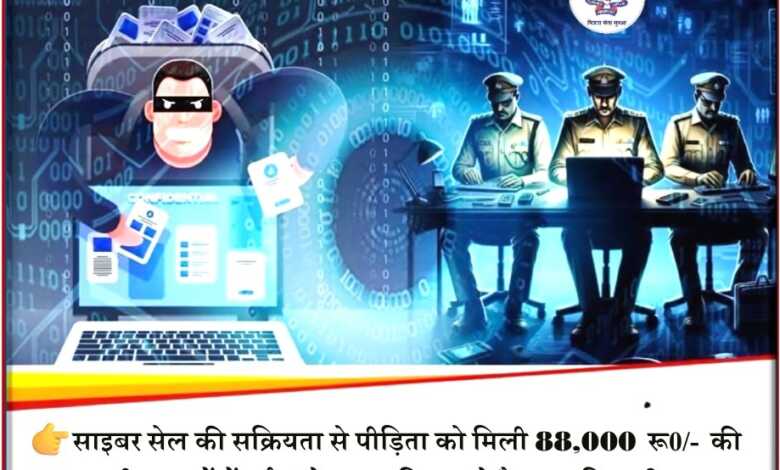 - साइबर सेल की सक्रियता से पीड़िता को मिली ₹88,000 की राहतः तीन चरणों में हुई ट्रांजेक्शन प्रक्रिया को ट्रैक कर किया रिकवर