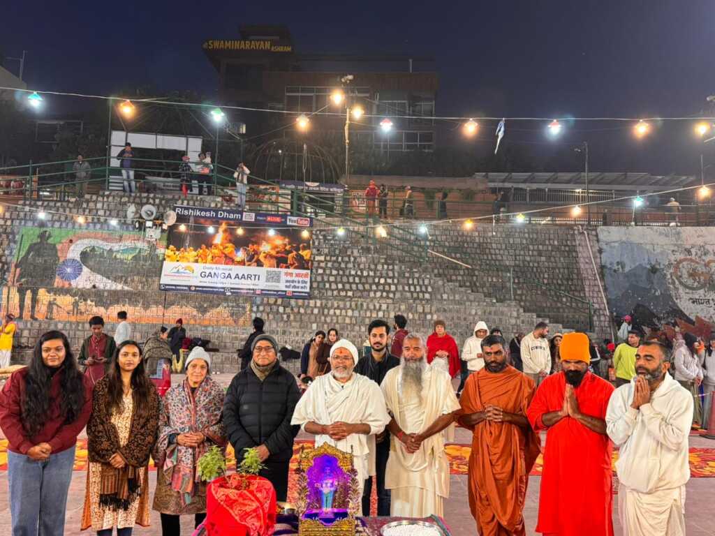 Rishikesh: A religious and spiritual event of the sacred worship of Tulsi Mata was held with devotion and proper rituals at Shri Swaminarayan Ashram, Ganga Aarti Ghat on December 25, 2025. A large number of devotees participated in this program organized on the banks of the Ganges and received the blessings of Tulsi Mata. On this auspicious occasion, Praveen Bhai Lad Ji, Anjana Lad Ji, Rishiraj Sunil Bhagat Ji, Acharya Gangaram Ji, and Bhakti Swami Ji were specially present and participated in the Tulsi Puja. The worship of Tulsi Mata was performed with Vedic chanting, lighting of lamps, and offering of flowers. During the program, the Shri Swaminarayan Ashram Ganga Aarti Ghat resonated with a devotional atmosphere due to the singing of hymns and devotional songs.