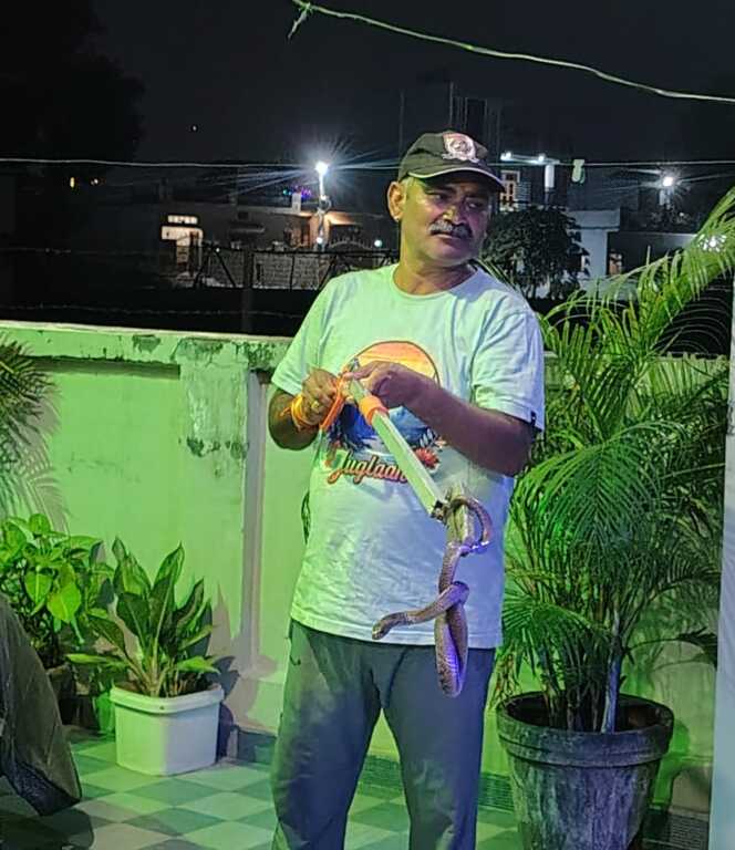 ऋषिकेश : ग्राम सभा खदरी खड़क माफ अंतर्गत दिल्ली फार्म निवासी दीपक रतूड़ी के घर में देर शाम सांप के घुस आने से हड़कम्प मच गया । सांप निकल आने की सूचना अंतर्राष्ट्रीय पुरस्कार प्राप्त पर्यावरणविद डॉ विनोद प्रसाद जुगलान को दी गई। सूचना का त्वरित संज्ञान लेते हुए वन्यजीव प्रेमी पर्यावरण विद विनोद प्रसाद जुगलान ने मौके पर पहुंच कर सांप को रेस्क्यू किया।उन्होंने बताया कि यह एक वयस्क स्पेक्टीकल कोबरा है जो अत्यधिक विषैला होता है। आसपास के खेतों से निकलकर घर में प्रवेश कर गया था। यद्यपि यह एक विषैला जीव है और इसके सर्प दंश और लापरवाही से किसी की जान भी जा सकती है।लेकिन सत्य बात यह भी है कि इन वन्यजीवों से प्रकृति के संरक्षण में मदद मिलती है।इस लिए कहा गया कि की जीव से वन और वन से जीवन। वन रहेंगे तो हवा पानी और जीवन मिलेगा। हमें पर्यावरण संरक्षण के लिए वन्य जीवों को मारना नहीं चाहिए।किसी भी वन्यजीव के आबादी क्षेत्र में आमद की सूचना वन विभाग या प्रशिक्षित वन्य जीव प्रेमी को देनी चाहिए। सांप को पकड़ते ही भीड़ ने राहत की सांस ली।जिसे सुरक्षित प्राकृतिक सुवास प्रदान करते हुए गंगा तट स्थित जंगल में छोड़ा गया।महावीर प्रसाद,विजय राम,आशुतोष रतूड़ी, अंशिका ने सांप पकड़ने पर सर्प मित्र डॉ विनोद प्रसाद जुगलान का आभार जताया।