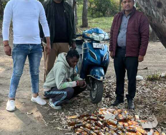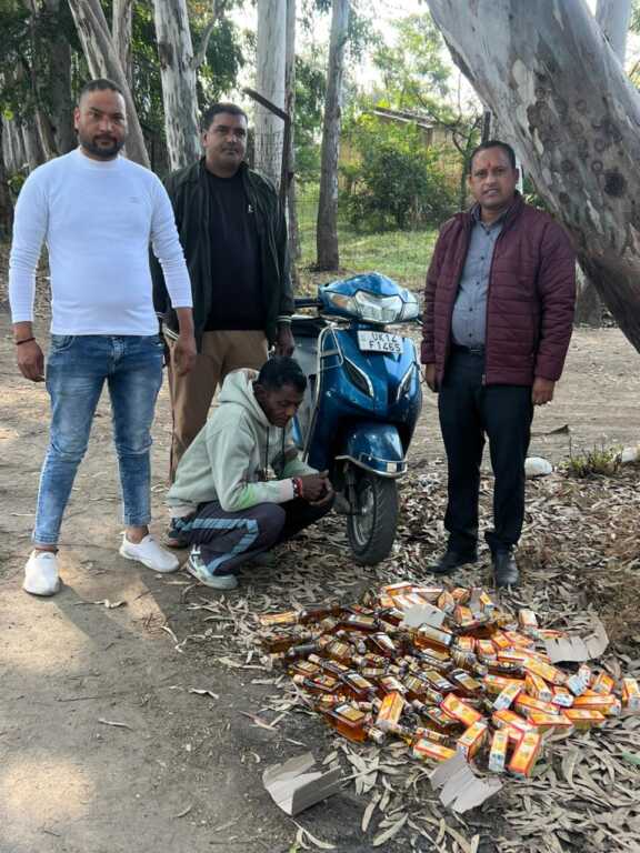 ऋषिकेश : अवैध शराब बिक्री की रोकथाम हेतु आबकारी विभाग जनपदीय प्रवर्तन देहरादून द्वारा प्रभारी सहायक आबकारी आयुक्त मती प्रेरणा बिष्ट के नेतृत्व में शनिवार को यानी दिनांक 29.11.2025 को एक दुपहिया वाहन स्कूटी संख्या UK 14f 1465 .से अवैध शराब परिवहन करते हुए रायवाला वन निगम डिपो के पास अभियुक्त मुकेश कुमार पुत्र रामेश्वर दास निवासी गांव बराड़ा थाना बराड़ा जिला अंबाला को केयर ऑफ रामाश्रय पुत्र मूरत राम लेबर कॉलोनी ऋषिकेश थाना ऋषिकेश जिला देहरादून के कब्जे से 24 पव्वे एमसीडी नंबर 1 व्हिस्की ,12 आधे मैकडॉवेल नंबर 1 व्हिस्की तथा 45 टेट्रा माल्टा देशी शराब के साथ गिरफ्तार किया गया है अभियुक्त के विरुद्ध धारा 60/72 आबकारी अधिनियम के अंतर्गत मुकदमा पंजीकृत किया गया। टीम में हेड कांस्टेबल राकेश सिंह, हेमंत सिंह, गोविंद सिंह, शामिल रहे ।