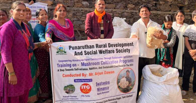 टिहरी गढ़वाल: पुनरुत्थान रूरल डेवलपमेंट एंड सोशल वेलफेयर सोसाइटी, मशरूम उत्पादन विशेषज्ञ अर्जुन सिंह दवाण तथा समाजसेवी एवं जिला पंचायत प्रतिनिधि गजेन्द्र राणा के सहयोग से ग्राम मिंडाथ, पट्टी दोगी में निःशुल्क ऑयस्टर मशरूम उत्पादन प्रशिक्षण कार्यक्रम सफलतापूर्वक आयोजित किया गया।संस्था के पदाधिकारियों ने बताया कि इसी प्रकार के कार्यक्रम भविष्य में पूरे क्षेत्र की विभिन्न ग्राम सभाओं में आयोजित किए जाएंगे, ताकि आने वाले समय में हर गाँव में मशरूम उत्पादन का विस्तार किया जा सके। इस प्रशिक्षण कार्यक्रम का मुख्य लक्ष्य ग्रामीण युवाओं, महिलाओं और बच्चों को आधुनिक कृषि तकनीकों से जोड़ते हुए उन्हें आत्मनिर्भर बनाना तथा स्वरोजगार की दिशा में प्रेरित करना था।
