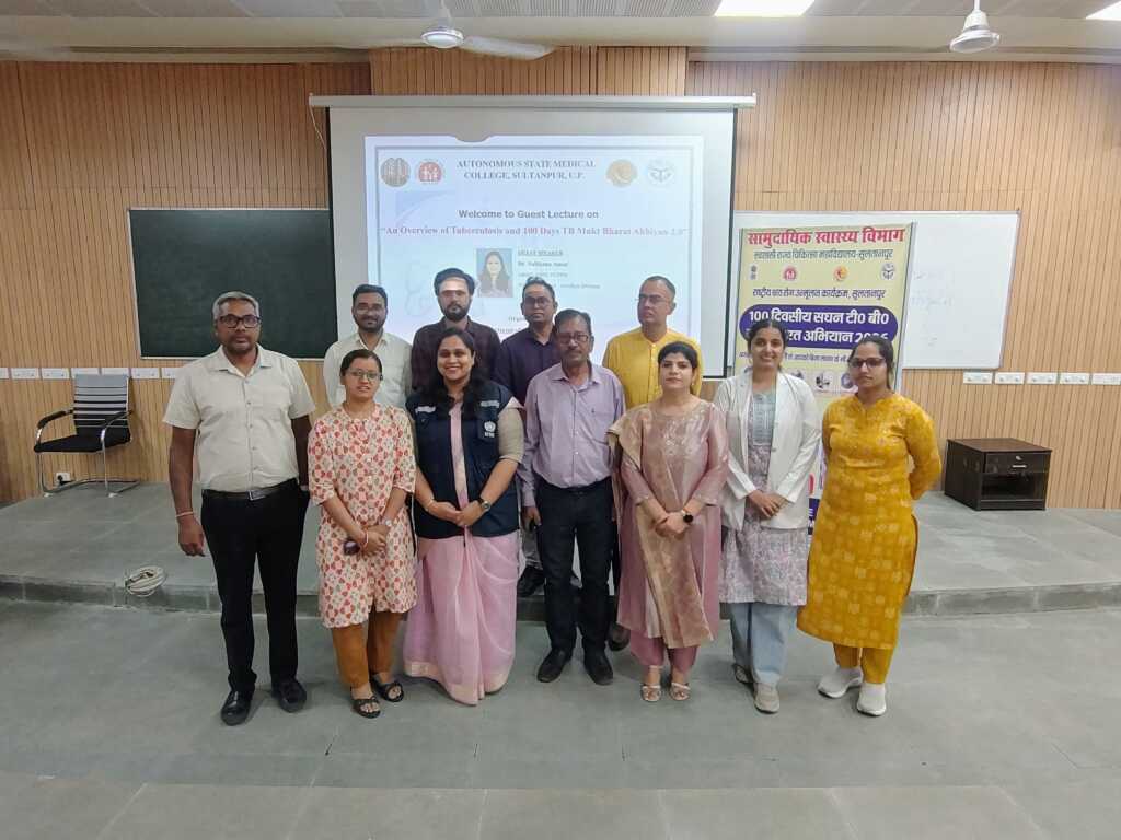 बता दें कि इस व्याख्यान की मुख्य वक्ता डॉ. सुल्ताना अंसार WHO कंसल्टेंट – अयोध्या मंडल उत्तर प्रदेश रहीं। उन्होंने टीबी रोग की वर्तमान स्थिति व इसके नियंत्रण एवं उन्मूलन हेतु चलाए जा रहे राष्ट्रीय कार्यक्रमों तथा 100 दिवस टीबी मुक्त भारत अभियान 2.0 के महत्व पर विस्तृत प्रकाश डाला,कार्यक्रम में जिला क्षय रोग अधिकारी (DTO) सुल्तानपुर डॉ. आर. के. कन्नौजिया की भी गरिमामयी उपस्थिति रही। इस आयोजन को महाविद्यालय के प्राचार्य डॉ. प्रियंक वर्मा एवं विभागाध्यक्ष सामुदायिक चिकित्सा के मार्गदर्शन एवं सहयोग से सफलतापूर्वक संपन्न कराया गया। कार्यक्रम का संचालन एवं समन्वय डॉ. आशीष बनर्जी एवं डॉ. अनीता मौर्य द्वारा किया गया।सामुदायिक चिकित्सा विभाग के संकाय सदस्यों में डॉ. राजीव कुमार,डॉ.पायल सिंह डॉ.राकेश भारती, सीनियर रेजिडेंट डॉ. शुभम एवं डॉ.एकता सहित अन्य विभागों के फैकल्टी, सीनियर रेजिडेंट,जूनियर रेजिडेंट,इंटर्न एवं एमबीबीएस छात्र-छात्राओं ने भी व्याख्यान में सहभागिता की। वरिष्ठ प्रोफेसर डॉ. सलिल श्रीवास्तव की उपस्थिति भी कार्यक्रम की गरिमा बढ़ाने वाली रही।कार्यक्रम के अंत में अतिथि वक्ता का स्वागत पौधा भेंट कर किया गया तथा उन्हें प्रशस्ति पत्र प्रदान कर सम्मानित किया गया। उल्लेखनीय है कि 100 दिवस टीबी मुक्त भारत अभियान 2.0, 24 मार्च से 1 जुलाई तक चलाया जा रहा है, जिसके अंतर्गत टीबी उन्मूलन के लिए व्यापक जनजागरूकता एवं स्वास्थ्य सेवाओं को सुदृढ़ करने का कार्य किया जा रहा है।