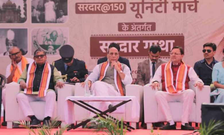 गुजरात : रक्षा मंत्री राजनाथ सिंह के साथ CM पुष्कर सिंह धामी ने सरदार@150 यूनिटी मार्च के अंतर्गत आयोजित सरदार गाथा कार्यक्रम में प्रतिभाग किया