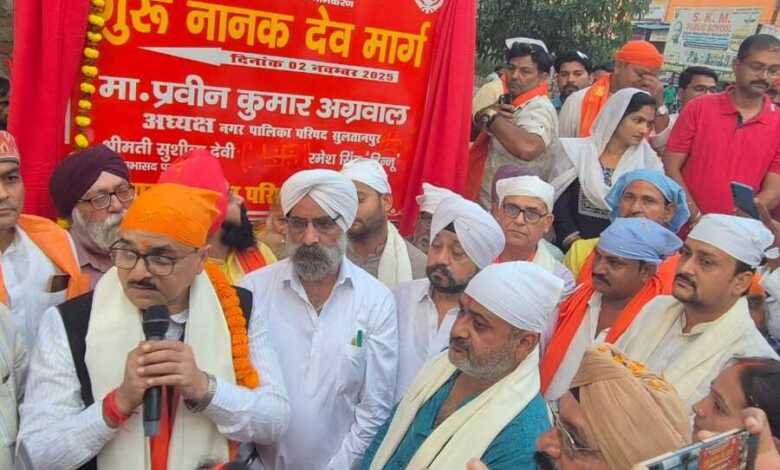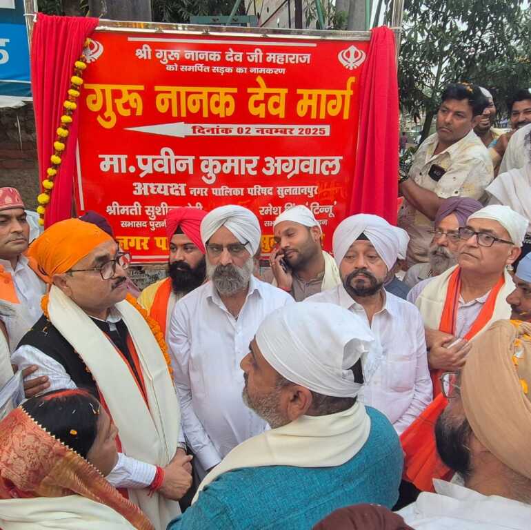 दीपांकुश चित्रांश क़ी रिपोर्ट…खबर उत्तर प्रदेश के सुल्तानपुर जिले से है जहाँ नगर क्षेत्र में डाकखाना चैराहा से गया प्रसाद चैराहे से होते हुए पंजाबी मार्केट जिला अस्पताल चैराहा तक के मार्ग का नामकरण नगर पालिका बोर्ड द्वारा सिखों के प्रथम गुरू श्री गुरू नानक देव जी के नाम पर ‘‘श्री गुरू नानक देव मार्ग’’ (जी0एन0डी0 रोड) रखा गया था,इसी क्रम में आज गुरू नानक देव जी की जयन्ती के पूर्व सिख समाज द्वारा निकाली गयी नगर कीर्तन शोभायात्रा में पंच प्यारों द्वारा पालिकाध्यक्ष प्रवीन कुमार अग्रवाल की विशिष्ट उपस्थिति में जिला अस्पताल के सामने इस मार्ग का लोकार्पण किया गया एवं तत्पश्चात डाकखाना चैराहे पर वरिष्ठ पत्रकार राज खन्ना द्वारा शिलापट्ट पर फीता काटते हुए नगर पालिका की तरफ से शोभायात्रा में शामिल श्रद्धालुओं को समारोहपूर्वक प्रसाद वितरण किया गया।