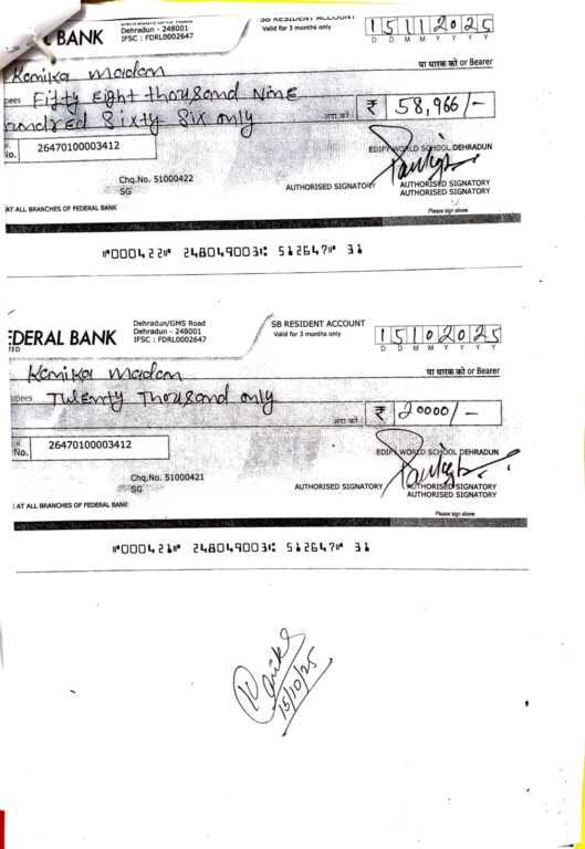 - डीएम संज्ञान ही है आदेश; 2 दिन में ही घुटनों के बल आया स्कूल प्रबन्धन; शिक्षिका का लम्बित वेतन, सुरक्षा राशि ‘78966 धनराशि के चैक व अनुभव प्रमाण पत्र जारी