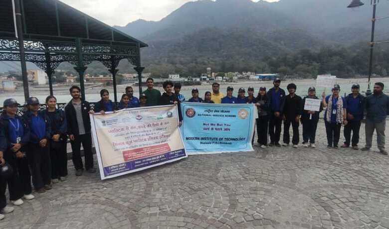 मुनि की रेती : स्वच्छ सर्वेक्षण 2025 एवं मॉडर्न इंस्टीट्यूट मैनेजमेंट ऑफ टेक्नोलॉजी के छठवें एनएसएस शिविर के अंतर्गत नगर पालिका परिषद मुनिकीरेती ढालवाला ने एमआईटी की एनएसएस यूनिट के साथ गंगा स्वच्छता एवं सिंगल यूज प्लास्टिक के प्रति रैली निकाल लोगों को जागरूक किया।