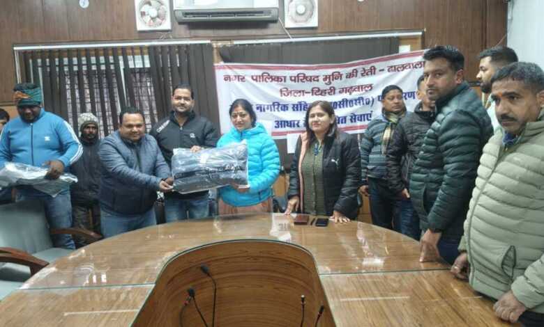 शीतलहर से बचाव हेतु नगर पालिका परिषद मुनिकीरेती-ढालवाला की अध्यक्ष नीलम बिजल्वाण ने पर्यावरण मित्रों को जैकेट वितरित की