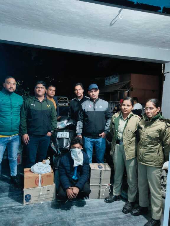 ऋषिकेश : अवैध शराब बिक्री की रोकथाम हेतु आबकारी विभाग ऋषिकेश द्वारा आबकारी निरीक्षक प्रेरणा बिष्ट के नेतृत्व में बुधवार शाम यानी दिनांक 26.11.2025 को एक दुपहिया वाहन स्कूटी संख्या UK14 4232 .से अवैध शराब परिवहन करते श्यामपुर के पास अभियुक्त को गिरफ्तार किया है. अभियुक्त का नाम राहुल पुत्र राजकुमार निवासी गढ़ी मयचक श्यामपुर है. इसके पास से 96 पव्वे इंपीरियल ब्लू व्हिस्की तथा 24 केन बियर बरामद हुई है. अभियुक्त के विरुद्ध धारा 60/72 आबकारी अधिनियम के अंतर्गत मुकदमा पंजीकृत किया गया। टीम में उप आबकारी निरीक्षक आशीष प्रकाश, हेड कांस्टेबल अर्जुन सिंह, हेमंत सिंह, गोविंद सिंह, एवं कांस्टेबल अंकित कुमार, आशीष चौहान, महिला कांस्टेबल सोनम,रेशमा शामिल रहे ।