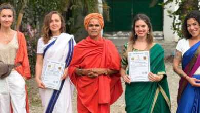 - UK : अवधूत स्वामी समर्पणानंद महाराज के हाथों विदेशी साधकों ने योग में डिप्लोमा पाया तो ख़ुशी से झूमे