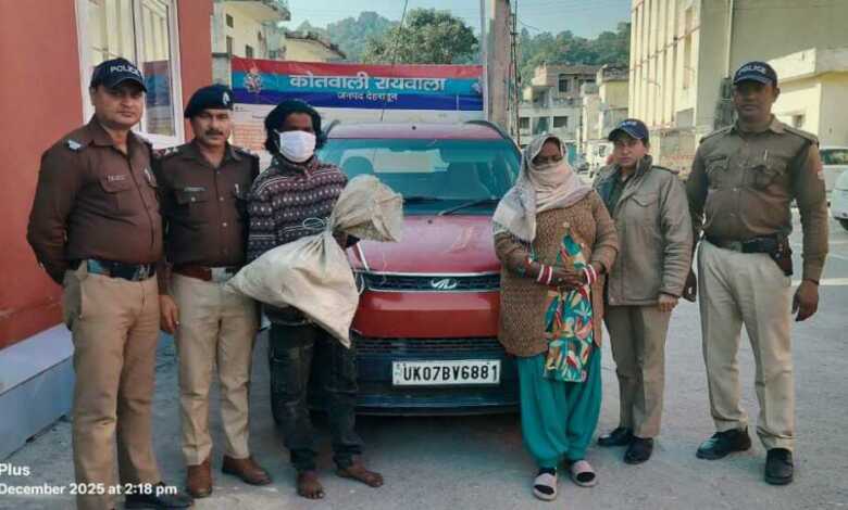 कोतवाली रायवाला का है मामला ….वरिष्ठ पुलिस अधीक्षक देहरादून के निर्देशों पर सम्पूर्ण जनपद में पुलिस द्वारा लगातार सघन चैकिंग अभियान चलाया जा रहा है। उक्त अभियान के तहत आज दिनांक: 04-12-25 की प्रात: पुलिस द्वारा की जा रही सघन चैकिंग के दौरान रायवाला पुलिस द्वारा रायवाला कोतवाली के गेट के सामने राष्ट्रीय राजमार्ग ऋषिकेश को जाने वाली सड़क पर एक लाल रंग के KUV 100 वाहन को रोककर चैक किया गया तो वाहन में बेताबनाथ पुत्र स्व0 रोशन नाथ निवासी काले की ढाल सपेरा बस्ती ऋषिकेश जिला देहरादून उम्र 35 वर्ष तथा उसकी पत्नी बरखा पत्नी बेताब नाथ निवासी उपरोक्त सवार थे। वाहन की डिग्गी को चैक करने पर उसमें से संरक्षित प्रजाती के 14 छोटे-बडे कछुए बरामद हुए, जिनके सम्बन्ध में पूछताछ करने पर कार सवार दम्पत्ति कोई सन्तोषजनक जवाब नहीं दे पाये और न ही उनसे सम्बन्धित कोई वैध कागजात ही दिखा पाये। पुलिस द्वारा दोनो अभियुक्तों को मौके से गिरफ्तार कर उनके विरूद्ध कोतवाली रायवाला पर सम्बन्धित धाराओं में अभियोग पंजीकृत किया गया।अभियुक्तों से सख्ती से पूछताछ करने पर अभियुक्त बेताबनाथ द्वारा बताया गया कि वह कबाडी का काम करता है तथा उक्त कछुओं को उन्होने नजीबाबाद निवासी एक व्यक्ति से खरीदा था, जिन्हें वह तस्करी कर अपने घर काले की ढाल ऋषिकेश ला रहे थे। अभियुक्त उक्त कछुओं को स्थानीय खरीदारों को मंहगे दामों में बेचकर मुनाफा कमाने की फिराक में थे।