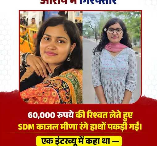 राजस्थान : RAS टॉपर काजल मीणा पर बड़ा आरोप, पहली पोस्टिंग में ही ACB का एक्शन 2024 बैच की RAS टॉपर काजल मीणा, जिन्होंने इंटरव्यू में समाज बदलने की बात कही थी… अब खुद भ्रष्टाचार के आरोपों में घिर गई हैं।पहली ही पोस्टिंग में उन पर रिश्वत लेने का मामला सामने आया है, जिसने प्रशासनिक व्यवस्था पर गंभीर सवाल खड़े कर दिए हैं। जानकारी के मुताबिक, नादौती में SDM पद पर तैनात काजल मीणा पर एक जमीन से जुड़े मामले में डिक्री जारी करने के बदले रिश्वत मांगने का आरोप है।शुरुआत में 1 लाख रुपये की मांग बताई गई, जिसे बाद में घटाकर 50 हजार रुपये किया गया। इसके अलावा 10 हजार रुपये रीडर के लिए तय किए गए।