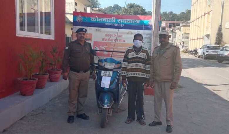 कोतवाली रायवाला :दि0 14/11/2025 को वादी गोविन्द राम पुत्र इन्द्रमणि निवासी गौहरीमाफी, रायवाला, देहरादून द्वारा थाना रायवाला पर प्रार्थना पत्र दिया कि अपनी स्कूटी एक्टिवा संख्या UK14C- 8165 को पैट्रोल पम्प रायवाला पर खड़ा कर वह किसी काम से ऋषिकेश गए थे, जब वापस आये तो उनकी स्कूटी पैट्रोल पम्प से किसी अज्ञात चोर द्वारा चोरी कर ली थी। प्राप्त तहरीर के आधार पर थाना रायवाला पर मु0अ0स0- 192/2025 धारा 303(2) BNS बनाम अज्ञात पंजीकृत किया गया।घटना के अनावरण एवं अभियुक्त की गिरफ्तारी हेतु एसएसपी देहरादून द्वारा थाना प्रभारी रायवाला को आवश्यक दिशा निर्देश दिए गए, जिसके क्रम में थाना रायवाला पर पुलिस टीम का गठन किया गया, गठित टीम द्वारा घटनास्थल के आसपास आने जाने वाले रास्तों के सीसीटीवी फुटेजों को चेक किया गया तथा घटना के संबंध में सुरागरसी/पतारसी करते हुए जानकारी एकत्रित की गई एवं मुखबिर तंत्र को सक्रिय किया गया। पुलिस द्वारा किए जा रहे प्रयासों से मुखबिर की सूचना पर दिनांक 15.11.2025 की सांय मोतीचूर जंगल सफारी जाने वाली रोड के पास से वाहन चोरी की घटना को अंजाम देने वाले अभियुक्त रमेश गवारिया पुत्र बाबूलाल गवारिया को चोरी की गई स्कूटी एक्टिवा संख्या UK14C- 8165 के साथ गिरफ्तार किया गया।