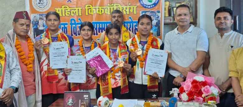 प्रतियोगिता से वापस लौटी होनहार बेटियों एवं उनके कोच कमल सिंह बिष्ठ को देहरादून रोड स्तिथ अंतरराष्ट्रीय गढ़वाल महासभा के कार्यालय में अंतरराष्ट्रीय गढ़वाल महासभा अध्यक्ष डॉ राजे नेगी एवं उपाध्यक्ष वीरेंद्र नोटियाल ने माल्यापर्ण,शाल ओढ़ाकर एवं स्मृति चिन्ह भेंटकर स्वागत एवं अभिनंदन किया। इस अवसर पर रेनबुकई एकेडमी के संस्थापक अंतरराष्ट्रीय कराटे खिलाड़ी एवं कोच कमल सिंह बिष्ठ ने कहा कि आज के समय में महिलाओं और बालिकाओं के लिए सेल्फ डिफेंस सबसे बड़ा हथियार है। किकबॉक्सिंग न केवल शारीरिक कौशल है, बल्कि यह आत्मविश्वास जगाकर स्वयं की रक्षा करने की शक्ति देता है। अंतरराष्ट्रीय गढ़वाल महासभा के संस्थापक अध्यक्ष डॉ राजे नेगी ने कहा कि ऋषिकेश में प्रतिभाओं की कमी नही है बस आवश्यकता है उनके हुनर को सही समय पर उचित पहचान मिलें। डॉ.नेगी ने शिक्षा के साथ खेलों की महत्ता पर प्रकाश डालते हुवे कहा कि खेल विद्यार्थियों के जीवन का अनिवार्य अंग है। खेल के माध्यम से युवा न केवल शारीरिक और मानसिक रूप से स्वस्थ रहते हैं, बल्कि यह उन्हें नशे जैसी सामाजिक बुराइयों से दूर रखने का भी सबसे सशक्त माध्यम है। किकबॉक्सिंग प्रतिभागी दीया, काजल,सलोनी एवं आरोही ने जानकारी देते हुवे बताया कि स्पोर्ट्स अथॉरिटी ऑफ इंडिया (SAI) द्वारा अस्मिता खेलो इंडिया किकबॉक्सिंग लीग का आयोजन पूरे भारतवर्ष के 150 जिलों में किया गया था। इसके बाद इसे चार ज़ोन में विभाजित किया गया और अंत में राष्ट्रीय प्रतियोगिता चेन्नई में आयोजित की गई। इस नेशनल प्रतियोगिता में पूरे देश से लगभग 500 महिला खिलाड़ियों ने भाग लिया।इस प्रतियोगिता का उद्देश्य महिलाओं में खेल और आत्मरक्षा के प्रति जागरूकता बढ़ाना है। इस अवसर पर सुधीर चौधरी,अभिषेक गुप्ता, करण कुमार, मनोज नेगी,अलका बिष्ठ,दीपा गुप्ता उपस्थित थे।