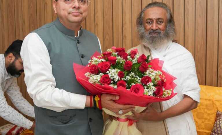 ऋषिकेश : मुख्यमंत्री पुष्कर सिंह धामी ने श्री श्री रविशंकर से भेंट की