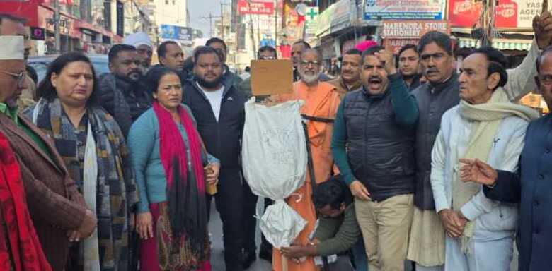 ऋषिकेश : 24/12/2025 को ऋषिकेश कांग्रेस जनों ने अंकिता भण्डारी हत्याकांड में भाजपा विधायक सुरेश राठौर की पत्नी उर्मिला के कथित बयानों में वीआईपी के नाम पर गट्टू उर्फ़ भाजपा नेता दुष्यंत गौतम का नाम लिया परन्तु दो दिन बीतने के बाद भी सरकार की ओर से कोई कार्यवाही ना होने पर कांग्रेस जनों ने भाजपा सरकार व दुष्यंत गौतम का रेलवे रोड स्थित कांग्रेस भवन के बाहर पुतला दहन किया।