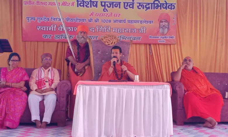 - वीरभद्र महादेव मंदिर पहुंचे निरंजन पीठाधीश्वर श्री श्री 1008 आचार्य महामंडलेश्वर स्वामी कैलाशानंद गिरि महाराज