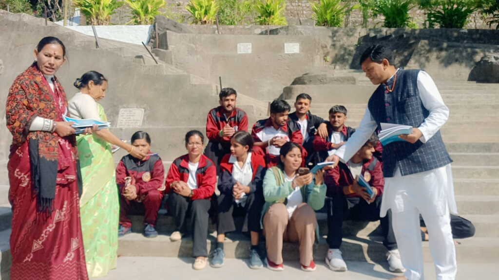 कार्यक्रम के दौरान,पंजाब सिंध क्षेत्र महाविद्यालय ऋषिकेश के योग साधक भी पहुंचे थे. जिन्हें नमामि नर्मदा संघ के राष्ट्रीय अध्यक्ष पंडित हरीश उनियाल और अखिल भारतीय सीता राम परिवार की प्रदेश अध्यक्ष सुशीला सेमवाल और प्रदेश महामंत्री सुधा पुंडीर ने साधकों को कॉपी और पेन वितरित किये. इस दौरान योगाचार्य सुदीप भट्ट के सानिध्य में योग साधकों ने आश्रम के प्रांगण में योग की भिन्न भिन्न मुद्राएँ कर योग को अपने जीवन में अपनाने और स्वस्थ रहने का सन्देश भी दिया.