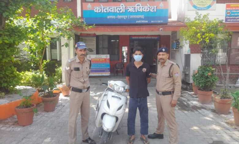 ऋषिकेश पुलिस ने किया स्कूटी चोर को गिरफ्तार, ओरिजनल नंबर प्लेट गंगा नदी में बहा दी फर्जी लगा ली