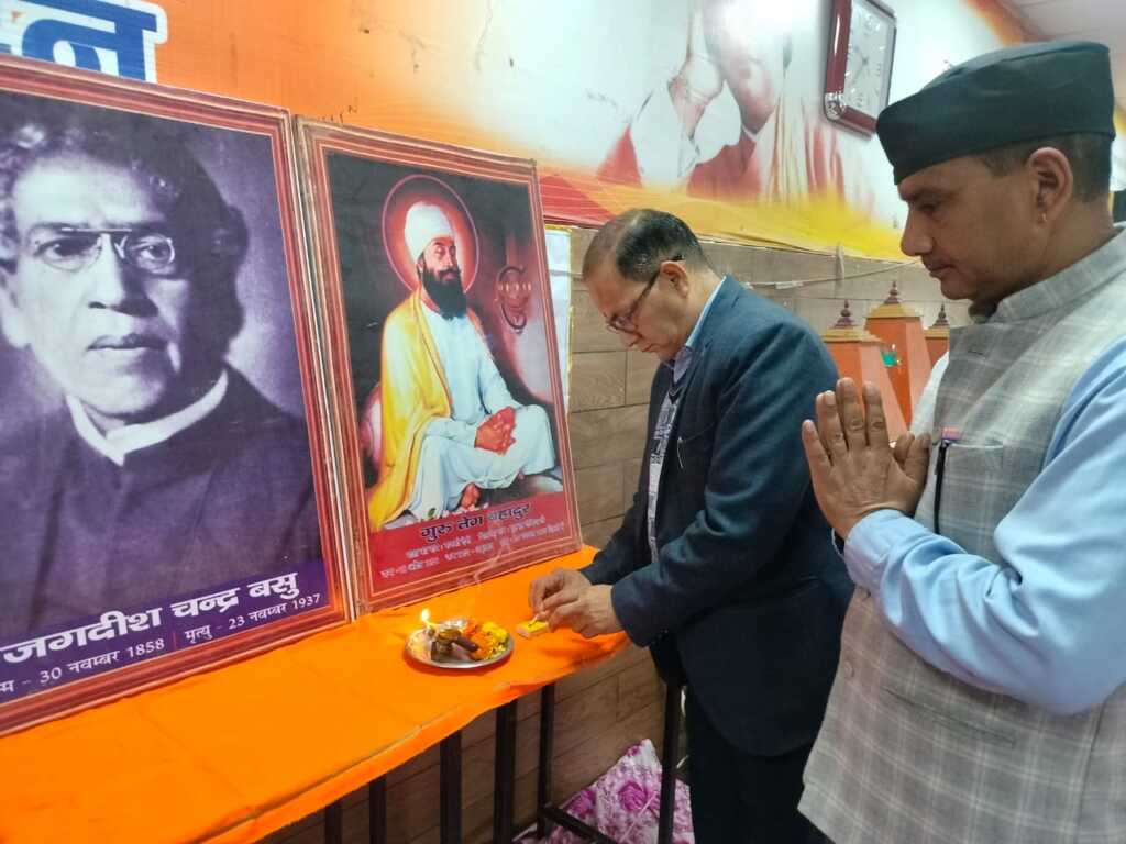 ऋषिकेश: सरस्वती विद्या मंदिर इंटर कॉलेज आवास विकास ऋषिकेश में दो महान व्यक्तित्वों — सिख धर्म के नौंवें गुरु श्री गुरु तेग बहादुर जी और भारत के महान वैज्ञानिक डॉ. जगदीश चंद्र बसु की जयंती/पुण्यतिथि/स्मृति दिवस पर एक विशेष कार्यक्रम आयोजित किया गया। कार्यक्रम की शुरुआत दोनों महान व्यक्तित्व के चित्र पर विद्यालय के प्रधानाचार्य उमाकांत पंत एवं उप प्रधानाचार्य नागेन्द्र पोखरियाल ने संयुक्त रूप से पुष्प अर्पित कर व दीप प्रज्ज्वलन के साथ की ।