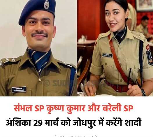 उत्तर प्रदेश : राज्य के दो आईपीएस अधिकारियों की शादी 28 मार्च को तय हुई है। संभल के एसपी केके बिश्नोई और बरेली में एसपी साउथ अंशिका वर्मा विवाह बंधन में बंधेंगे। केके बिश्नोई 2018 बैच के आईपीएस अफसर हैं, जबकि अंशिका वर्मा 2021 बैच की अधिकारी हैं। दोनों की शादी राजस्थान के बाड़मेर में होगी और जोधपुर के एक रिसॉर्ट में रिसेप्शन आयोजित किया जाएगा। यह खबर इन्टरनेट पर सबसे ज्यादा चर्चित या कहिये ट्रेंडिंग में है आज.