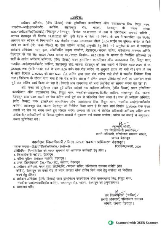 UK : जिला प्रशासन का एक्शन; रोड़ कटिंग शर्तों का उल्लंघन; यूपीसीएल की अनुमति निरस्त