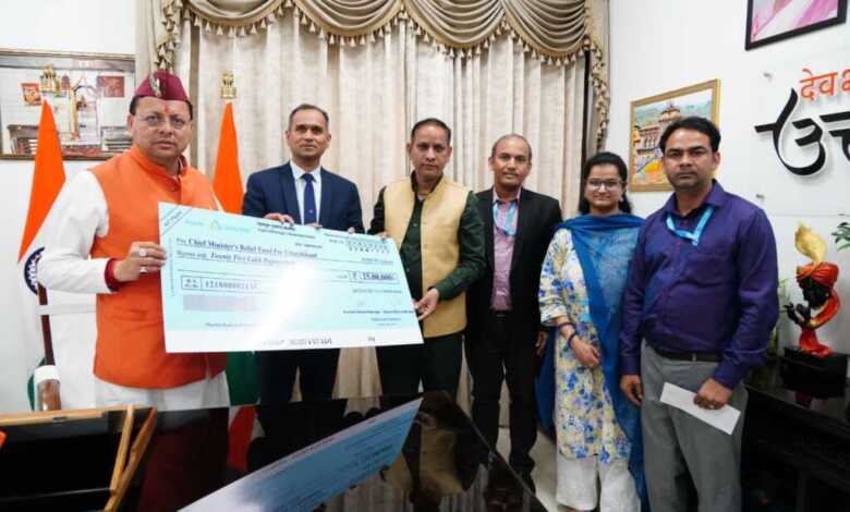 UK : मुख्यमंत्री को केनरा बैंक ने मुख्यमंत्री राहत कोष हेतु 25 लाख रुपये का चेक किया भेंट