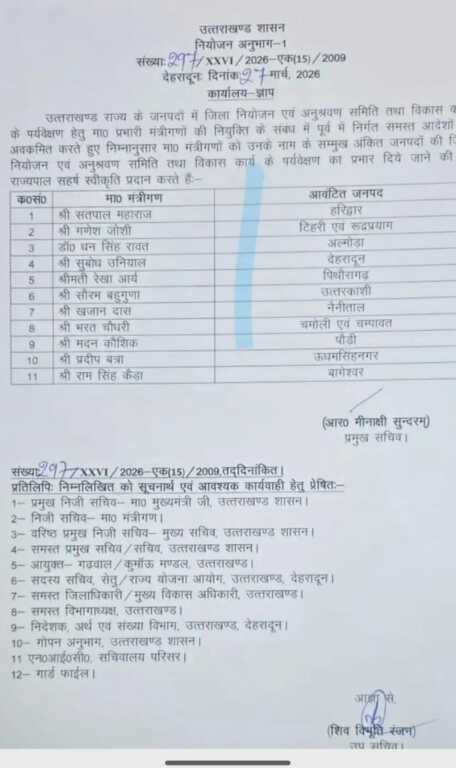 UK : मुख्यमंत्री ने मंत्रियों को दी जिलों की जिम्मेवारी, बनाये गए प्रभारी, देखिये लिस्ट