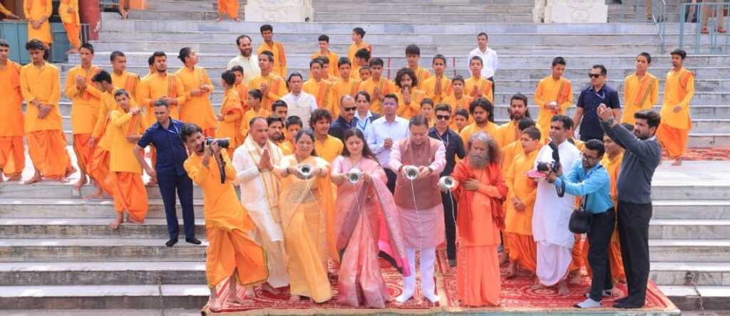 यह आयोजन उत्तराखंड की आध्यात्मिक विरासत, सनातन परंपराओं की गरिमा तथा राष्ट्र कल्याण के प्रति समर्पण का जीवंत प्रतीक है। माँ गंगा के तट पर 200 से अधिक विदूषियों ने वैदिक मंत्रों का उच्चारण कर पूरे वातावरण को पवित्र ध्वनि से गूंजायमान किया। सम्पूर्ण वातावरण दिव्यता, श्रद्धा और सकारात्मक ऊर्जा से आलोकित हो उठा।य मुख्यमंत्री ने इस अवसर पर उत्तराखंड राज्य की निरंतर उन्नति, भारत की सुरक्षा, समृद्धि तथा सम्पूर्ण विश्व में शांति और सद्भाव के लिए विशेष प्रार्थना की। साथ ही देवभूमि उत्तराखंड की समृद्धि, प्राकृतिक संतुलन, कल्याण और आध्यात्मिक उन्नयन हेतु विशेष हवन में आहुति अर्पित की।