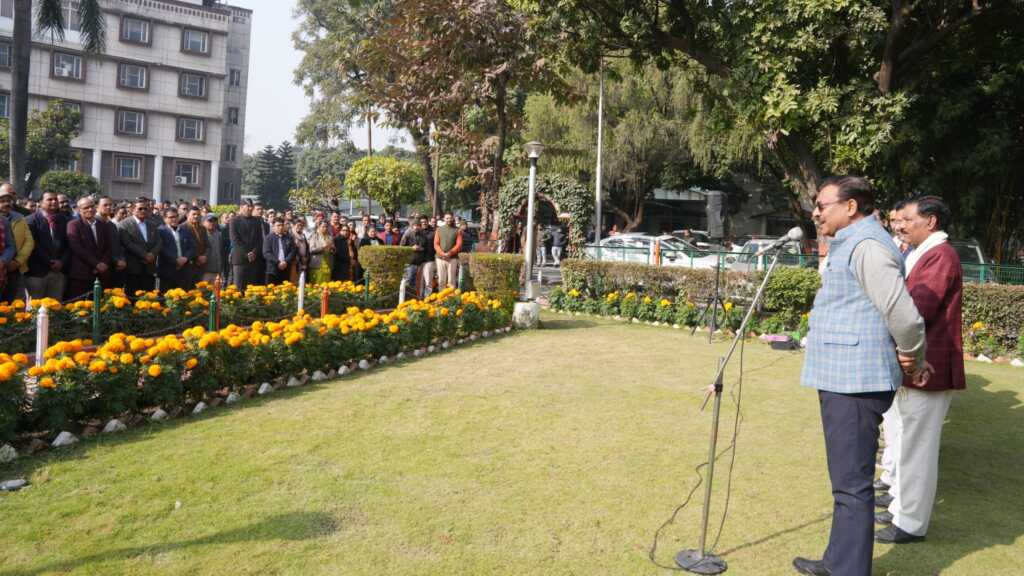 सचिवालय परिसर में उपस्थित सभी अधिकारी-कर्मचारीगणों को संबोधित करते हुए मुख्य सचिव ने कहा कि यह सचिवालय राज्य की सर्वाेच्च संस्था है। हम सभी इस संस्था के भागीदार हैं, इस राज्य की समस्त नीतियां और महत्त्वपूर्ण निर्णय इसी संस्था से निकलते हैं। इसलिए इस संस्था की गरिमा बनाए रखने और इसके उद्देश्यों को फलीभूत करने की जिम्मेदारी हम सभी की है। नववर्ष के अवसर पर हमें यह संकल्प लेना है कि इस संस्था की गरिमा और इसका स्टेटस सिर्फ उत्तराखण्ड ही नहीं बल्कि अन्य राज्यों के लिए भी प्रेरणा बने। उन्होंने कहा कि हमें प्रदेश एवं प्रदेशवासियों की सेवा के लिए, उनकी समस्याओं के निराकरण के लिए Whole of Government Approach अपनाते हुए Single Entity के रूप में कार्य करते हुए प्रदेशवासियों के सुख दुख में सहभागी बनना है।इस अवसर पर अपर सचिव नवनीत पाण्डेय, सचिवालय संघ के पदाधिकारी एवं सचिवालय के समस्त अधिकारी कर्मचारीगण उपस्थित थे।