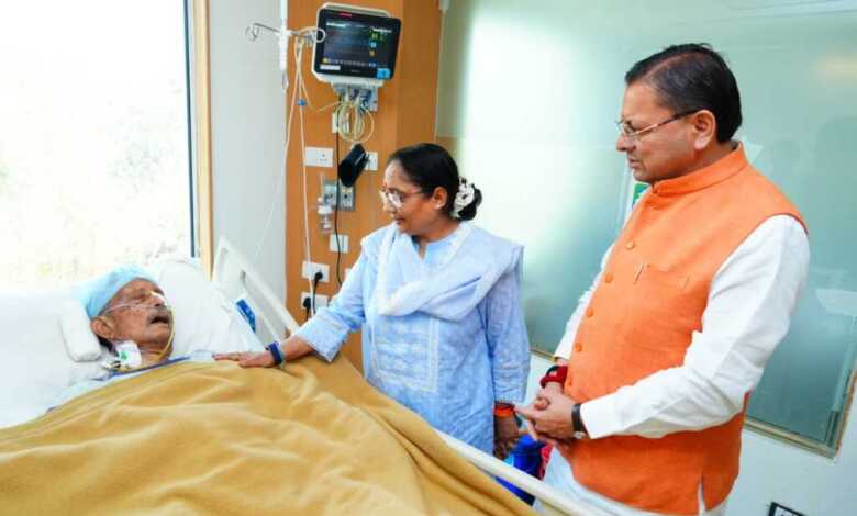 UK : पूर्व CM जनरल भुवन चंद्र खंडूड़ी को देखने पहुंचे CM धामी मैक्स हॉस्पिटल