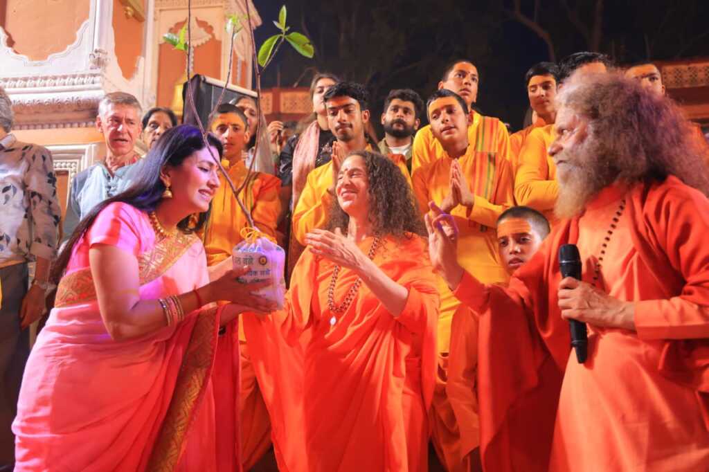 उनका सत्य और करुणा का संदेश भी आज के समय में अत्यंत प्रासंगिक है। जब दुनिया में भ्रम, हिंसा और असमानता बढ़ रही है, भगवान महावीर की शिक्षा हमें यह मार्गदर्शन देती है कि सत्य के मार्ग पर चलना और सभी के प्रति करुणा रखना ही वास्तविक मानवता है। यही मूल्य हमारे व्यक्तिगत जीवन, सामाजिक संबंधों और वैश्विक समुदाय के लिए मार्गदर्शक हैं।इस महावीर जयंती पर, आइए सत्य, अहिंसा और करुणा को अपने जीवन का मूल उद्देश्य बनाएं। यही मार्ग है जो हमें आत्मिक शांति, समाजिक सद्भाव और मानव कल्याण की ओर ले जाता है।दीप्ति भटनागर को पूज्य स्वामी और साध्वी ने रूद्राक्ष का पौधा देकर उनका अभिनन्दन किया।