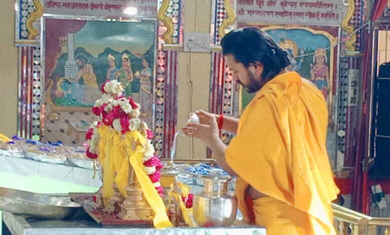 - जगतगुरु रामानंदाचार्य उत्तराखंड पीठाधीश्वर स्वामी कृष्णाचार्य महाराज द्वारा भगवान वेणुगोपाल को 108 कलशो से जलाभिषेक किया गया