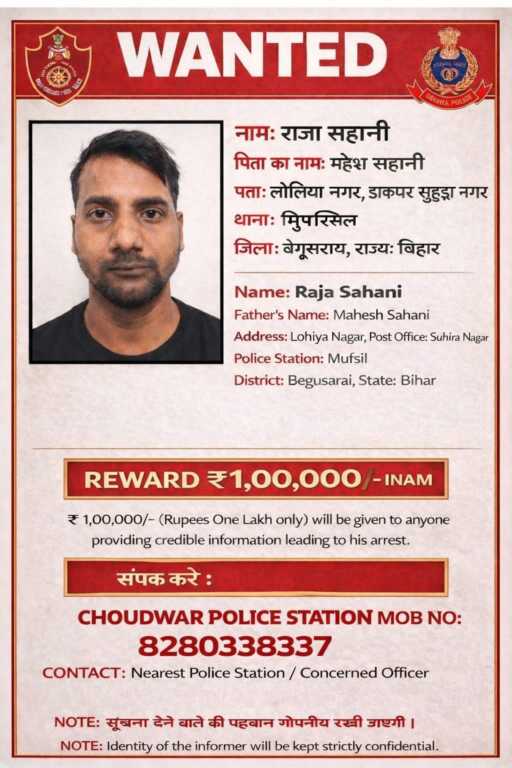1-राजा साहनी पुत्र महेश साहनी निवासी लोदिया नगर, थाना मीरगंज, जिला बेगूसराय (बिहार) उम्र 34 वर्ष
