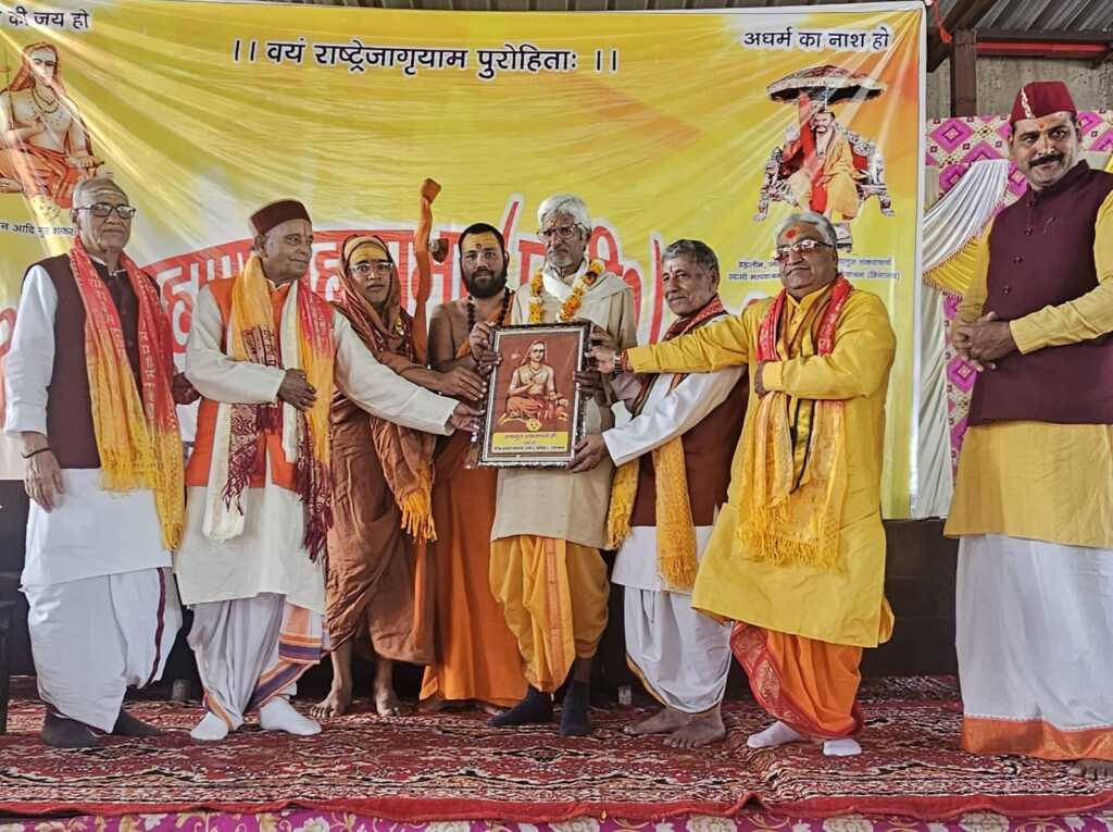 उसके पश्चात वैदिक ब्राह्मण महासभा के सभी पदाधिकारियों द्वारा आये हुए सभी अतिथियों एवं वैदिक विद्वानों को उत्तरीय एवं पुष्पमाला पहनाकर सम्मानित किया गया. महामंत्री आचार्य शिव स्वरूप सेमवाल ने सभी आए हुए अतिथियों का स्वागत करते हुए वैदिक ब्राह्मण महासभा के कार्यों को बताया कि महासभा समाज में क्या – क्या कार्य करती है. इस शुभ अवसर पर व्याकरण के मूर्धन्य विद्वान पूर्व प्राचार्य महेन्द्र नारायण शुक्ल को ज्योतिष के क्षेत्र में पूर्व प्राचार्य जयकृष्ण सेमवाल को वेद के क्षेत्र में कार्य करने के लिए शिव कुमार मालवीय सहित सभी संस्कृत महाविद्यालयों/ विद्यालयों के प्रधानाचार्यों को महासभा द्वारा सम्मानित किया गया. मुख्य अतिथि आचार्य ममगाँई ने कहा कि वैदिक ब्राह्मण महासभा के द्वारा किये जा रहे प्रयास सराहनीय है. उन्होंने कहा आज के समय में वैदिक सनातन परम्पराओं को बचाना बहुत बडी चुनौती है. हम सब को मिलकर इसके लिए प्रयास करने होंगे. उन्होंने कहा कि आज प्रमुख त्यौहारों व्रतोत्सवों को लेकर समाज मे कई प्रकार की भ्रांतियां फैल रही है. हम सबको एक मंच पर आकर उन भ्रांतियों का समाधान करना है.