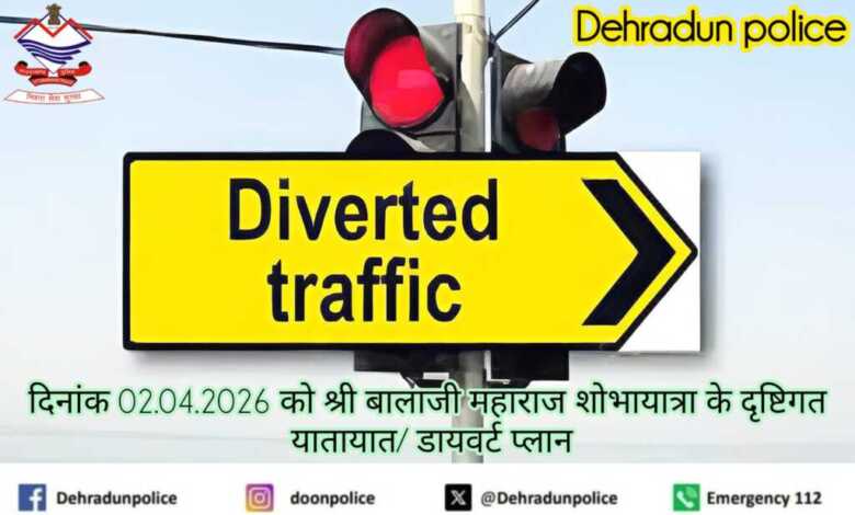 UK: दिनांक 02.04.2026 को श्री बालाजी महाराज शोभायात्रा के दृष्टिगत यातायात/ डायवर्ट प्लान