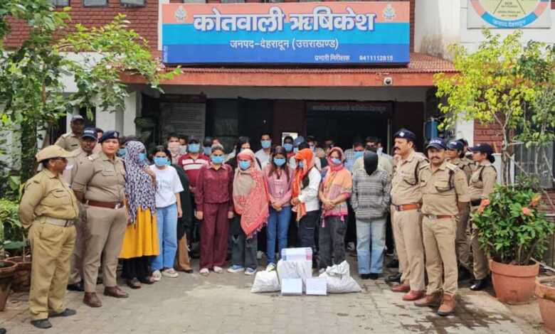 31-सिमरन, पुत्री अतपाल, रोहिणी सेक्टर-1, नई दिल्ली, उम्र 23 वर्ष,32-अंजलि, पुत्री विवेक, फरीदाबाद, उम्र 20 वर्ष,33-पवित्रा, पुत्री कविराज, सेक्टर-16, नई दिल्ली, उम्र 33 वर्ष,34-सरिता लामा, पुत्री तुलसी बहादुर लामा, रोहिणी सेक्टर-16, दिल्ली, उम्र 39 वर्ष,35-सानिया, पुत्री इरफान, एफ 383/14, गली नं. 14, रजोरी भजनपुरा, दिल्ली, उम्र 20 वर्ष, 36-प्रीति, पुत्री विजय सिंह, बेगमपुर, राजीवनगर, दिल्ली, उम्र 33 वर्ष हैं. 37-मायरा, पुत्री मौहम्मद गुलाब, लक्ष्मीनगर, दिल्ली, उम्र 26 वर्ष,38-सबीना, पुत्री कविराज, रोहिणी सेक्टर-16, दिल्ली, उम्र 29 वर्ष,39-श्वेता, पत्नी नरेश कुमार, गांव पसतरा, थाना जानी खुर्द, मेरठ, उम्र 24 वर्ष,40-मनीषा कौशिक, पुत्री हरवीर कौशिक, चिपयाना गली नं. 06, ग्रेटर नोएडा, थाना बीसरक, उम्र 19 वर्ष को हरिद्वार रोड स्थित होटल नवरंग में चल रही अवैध जुआ पार्टी व शराब परोसते हुए पर पुलिस टीम द्वारा अभियुक्तगणों को गिरफ्तार कर अभियुक्तगणों के विरुद्ध कोतवाली कोतवाली ऋषिकेश पर मुकदमा अपराध संख्या: 123/2026 धारा 3/4/5 जुआ अधिनियम व धारा 60/68 आबकारी अधिनियम के तहत अभियोग पंजीकृत किया गया है। होटल नवरंग को सील किया गया । फरार आरोपी होटल मालिक की तलाश जारी है। कोतवाली ऋषिकेश क्षेत्रान्गर्त नशा तस्करी, जुआ एवं अवैध गतिविधियों के विरुद्ध सख्त अभियान जारी है।
