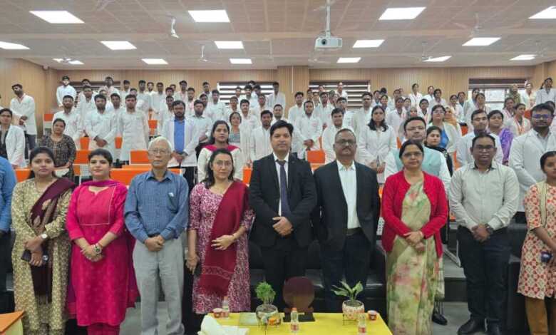दूसरे कार्यक्रम के मुख्य आकर्षण के रूप में किंग जॉर्ज मेडिकल यूनिवर्सिटी (KGMU), लखनऊ के मेडिसिन विभाग के एसोसिएट प्रोफेसर डॉ. सतीश कुमार द्वारा मधुमेह पर एक अत्यंत ज्ञानवर्धक और प्रभावशाली व्याख्यान प्रस्तुत किया गया।उन्होंने अपने संबोधन में मधुमेह के विभिन्न कारणों जैसे स्ट्रेस (तनाव),हैपी हार्मोन की भूमिका मेटाबॉलिक सिंड्रोम लाइफस्टाइल मैनेजमेंट का महत्व डायबिटीज के क्षेत्र में हाल के वैज्ञानिक प्रगति पर विस्तारपूर्वक चर्चा की और छात्रों को स्वस्थ जीवनशैली अपनाने व नियमित स्वास्थ्य जांच के प्रति जागरूक किया। डॉ.सतीश कुमार को उनके मूल्यवान व्याख्यान हेतु प्रिंसिपल डॉ. सलिल श्रीवास्तव द्वारा ममेंटो, शॉल एवं प्रमाणपत्र देकर सम्मानित किया गया। साथ ही प्रिंसिपल डॉ. सलिल श्रीवास्तव को भी डॉ.सुपर्णा दुबे द्वारा सम्मानित किया गया।कार्यक्रम का सफल संचालन फार्माकोलॉजी विभाग की सहायक आचार्य डॉ.सबाहत हसन एवं डॉ. स्वाति राय द्वारा किया गया।